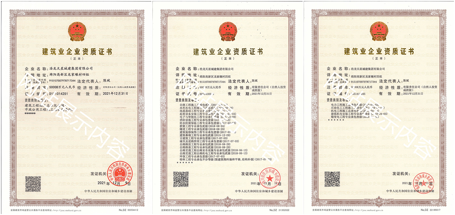 浩龍?zhí)煨浅墙瘓F(tuán)有限公司,2007年成立于“李白故鄉(xiāng)、中國科技城”—四川省綿陽市,企業(yè)注冊資本金5.0008億元。公司共有27項(xiàng)建筑業(yè)企業(yè)資質(zhì),其中國家一級(jí)資質(zhì)11項(xiàng),二級(jí)資質(zhì)10項(xiàng),三級(jí)資質(zhì)5項(xiàng),特種資質(zhì)不分等級(jí)1項(xiàng),類別涵蓋建筑、市政、水利、機(jī)電、隧道、起重設(shè)備安裝等基礎(chǔ)及未來發(fā)展重點(diǎn)專業(yè)。公司下設(shè)三個(gè)辦事處,業(yè)務(wù)范圍輻射全國,在建項(xiàng)目三十余個(gè),累計(jì)完成產(chǎn)值超11億元。公司是綿陽市建筑施工企業(yè)協(xié)會(huì)副會(huì)長單位、綿陽遂寧商會(huì)會(huì)長級(jí)單位、綿陽首批建筑業(yè)綠卡企業(yè),在綿陽本地企業(yè)中綜合實(shí)力名列前茅。